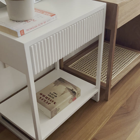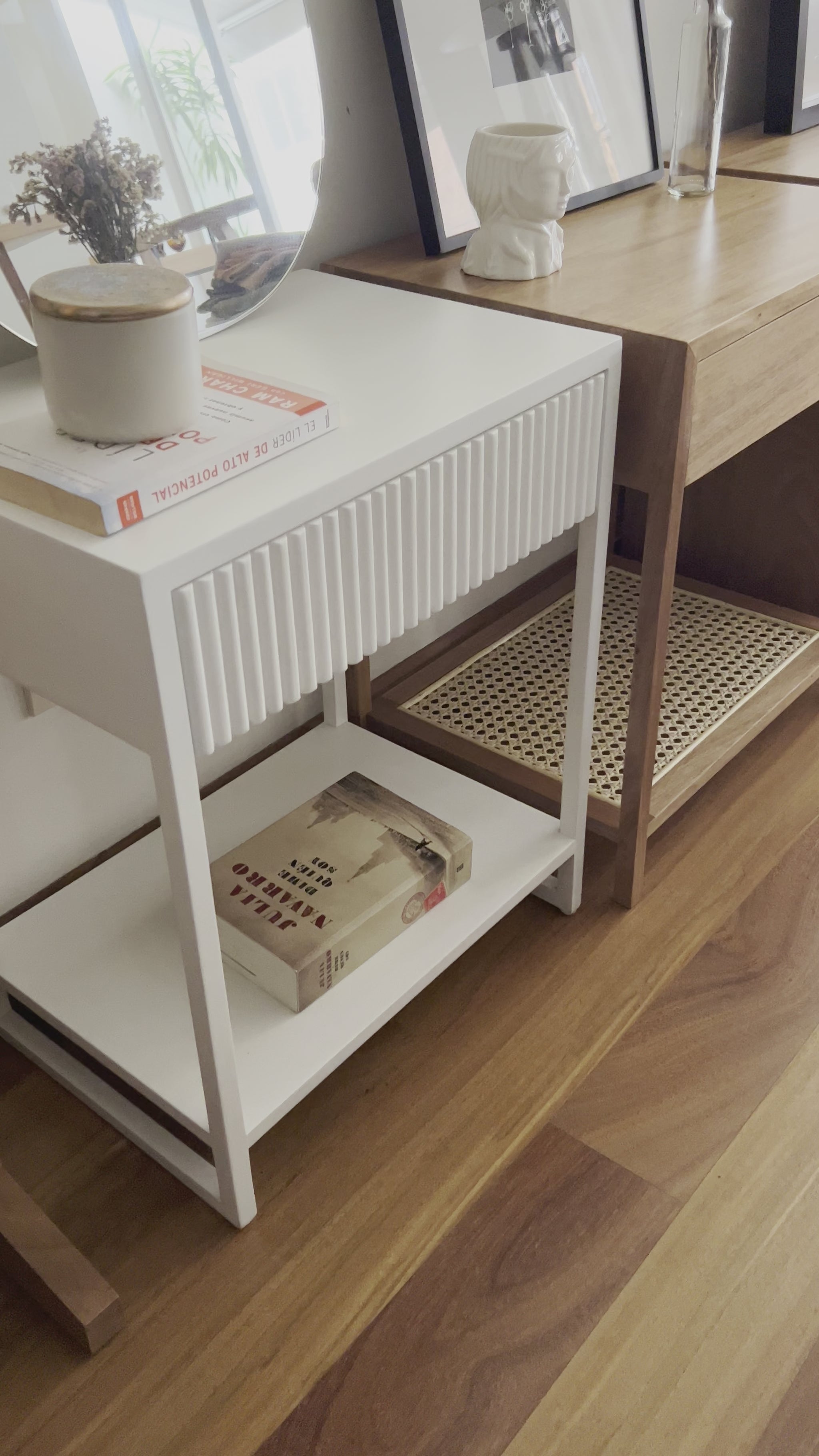 Material: Madera cachimbo maciza natural, lustre mate o pintado de blanco mate